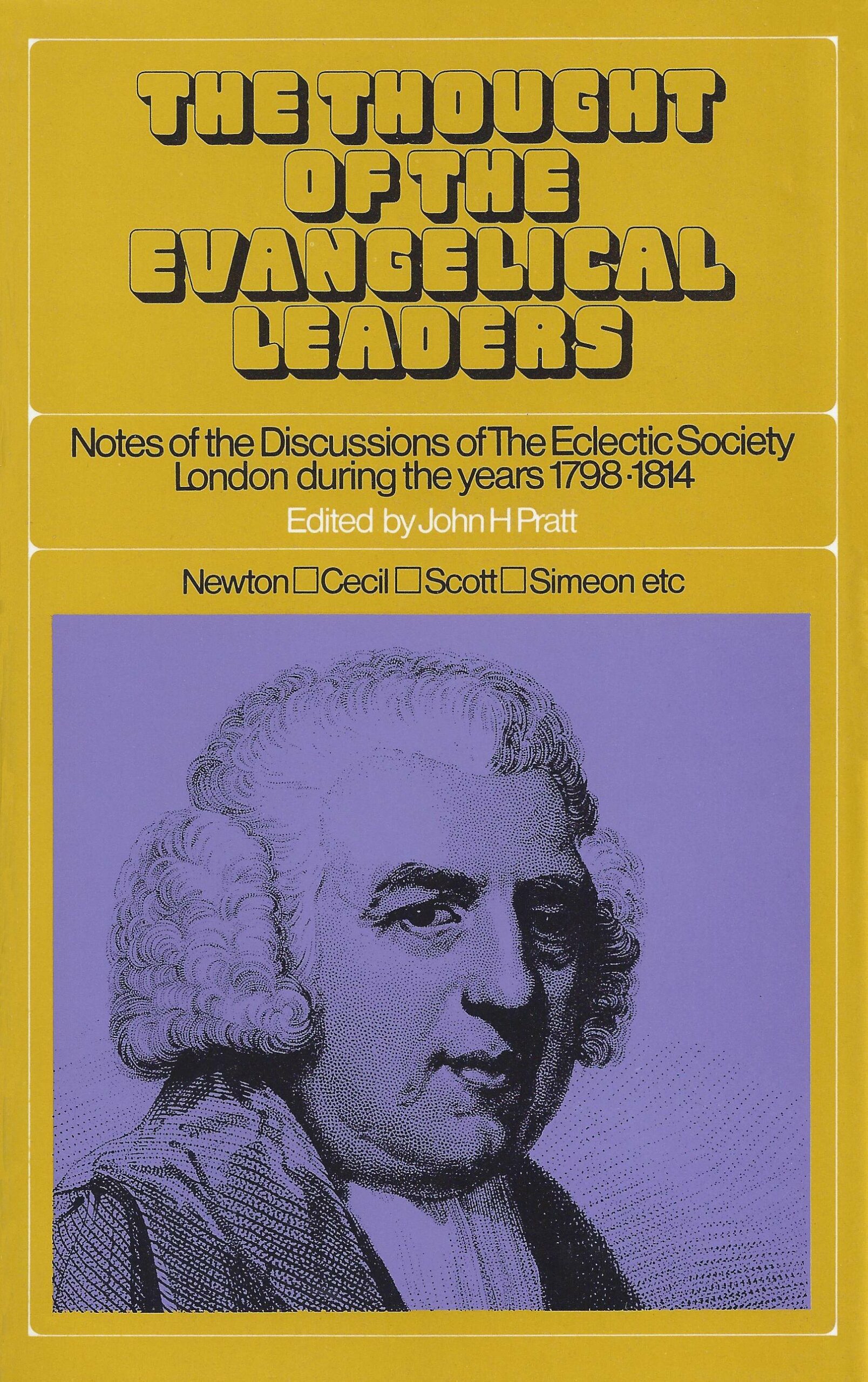 The Eclectic Society was formed in 1783 by John Newton, Richard Cecil, Henry Foster and Eli Bates, and held its first meeting at the Castle and Falcon Inn, Aldersgate Street (where both the London Missionary Society and the Church Missionary Society were later formed). Its aim was to provide fellowship for ministers of the gospel in particular, and to encourage biblical and experimental Christianity. The Society increased in size, and meetings were held fortnightly in the vestry of Cecil’s church, St. John’s, Bedford Row, and included several laymen and nonconformist ministers. Besides the illustrious founders, such influential evangelicals as Thomas Scott, author of the famous Bible commentary, and Charles Simeon of Cambridge were also members.