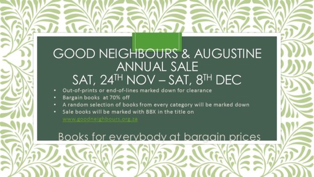 Good Neighbours Bookshop and Augustine Bookroom are closed till Monday, 6th Jan 2020. Any orders placed during this closure period will be processed on 6th Jan. Email info@goodneighbours.org.za for any information.